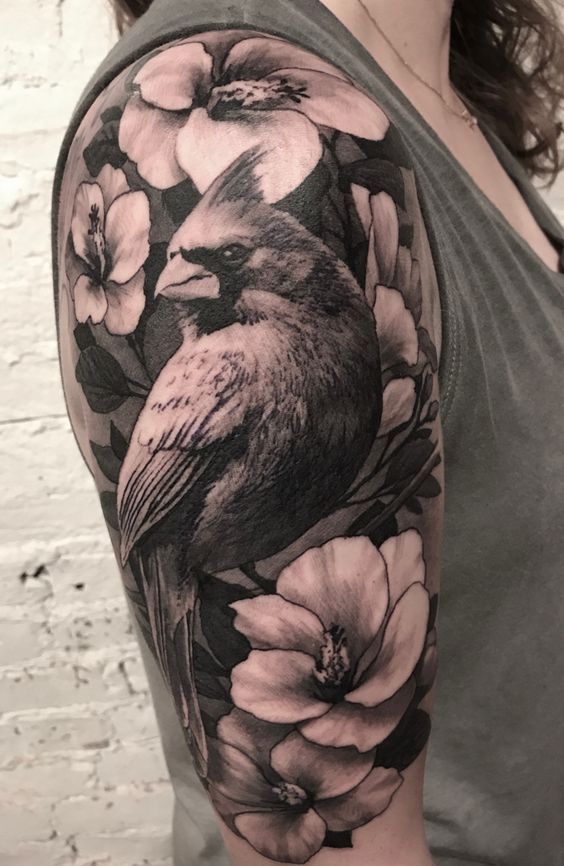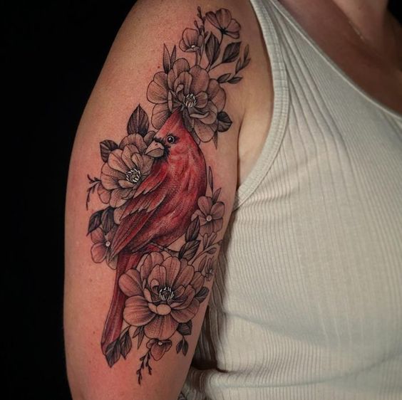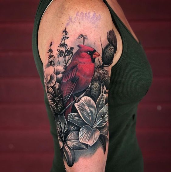 Cardinal tattoos often include elements of nature. These can be delicate flower patterns or rugged, leafy branches. Such details enhance the tattoo’s beauty, creating a harmonious blend with the cardinal at the center. It’s a celebration of nature and its perpetual beauty.