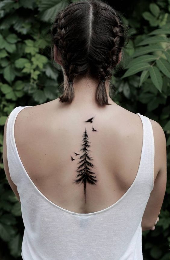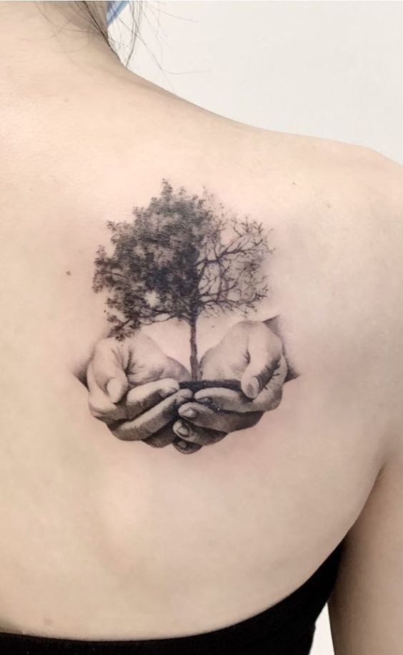 Envision a fruit tree tattoo, full of life and abundance. Furthermore, a eucalyptus tree design can symbolize healing and rejuvenation. Reflect on a tropical rainforest tree, showcasing biodiversity and environmental awareness. Lastly, a snowy pine tree design might represent serenity and inner peace.