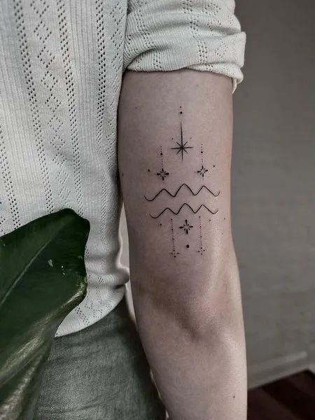 Consider a constellation tattoo for a subtle, starry nod to your sign. It stylishly links you to the cosmos. Integrating important dates or names into your Aquarius tattoo adds a personal touch. It makes your design uniquely yours. A minimalist Aquarius tattoo, using clean lines and simple design, suits those who prefer a subtle approach.