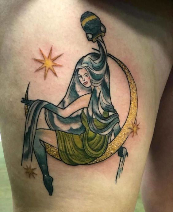 A celestial tattoo, merging the sign with cosmic elements, connects you with the universe. A watercolor Aquarius tattoo, showcasing vibrant colors, reflects the sign’s dynamic and inventive spirit. An intricate, line-art tattoo offers a blend of sophistication and complexity.