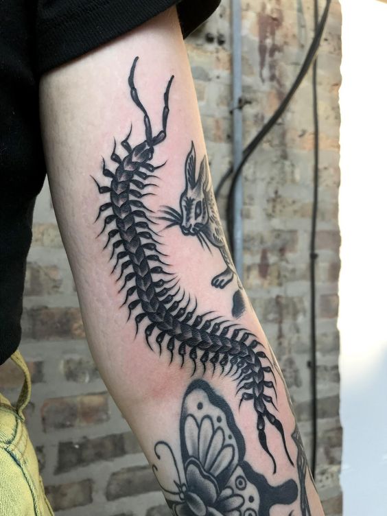 The placement of centipede tattoos is versatile. They can curve along arms or legs, mimicking the centipede’s natural movement. This placement adds an extra layer of realism and dynamism to the design. It also allows for a more interactive and engaging tattoo experience.