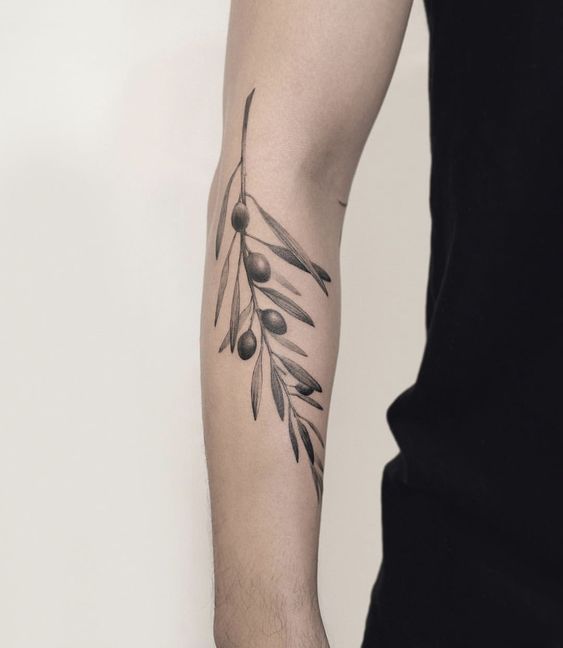 An olive branch arm tattoo can be a daily reminder of personal victories. It’s a piece of art that’s both public and private, seen or unseen as you wish. Also, it can stand alone or be part of a larger, floral piece. Equally important, it bridges genders, appealing to all who seek its poignant message.