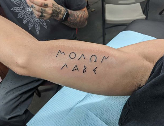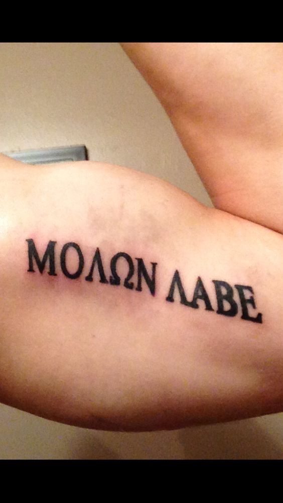Bicep Molon Labe Tattoo designs have deeply resonated with many, representing defiance and valor. But what’s the allure? Molon Labe means “come and take them.” Originating from ancient Sparta, it showcases bravery. Kings and warriors once uttered it. Now, tattoo enthusiasts wear it.