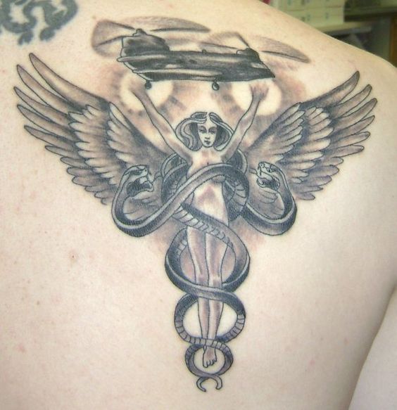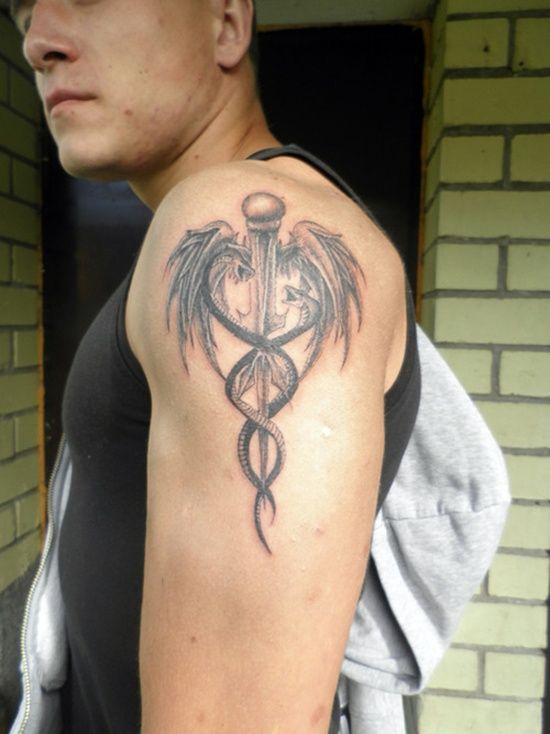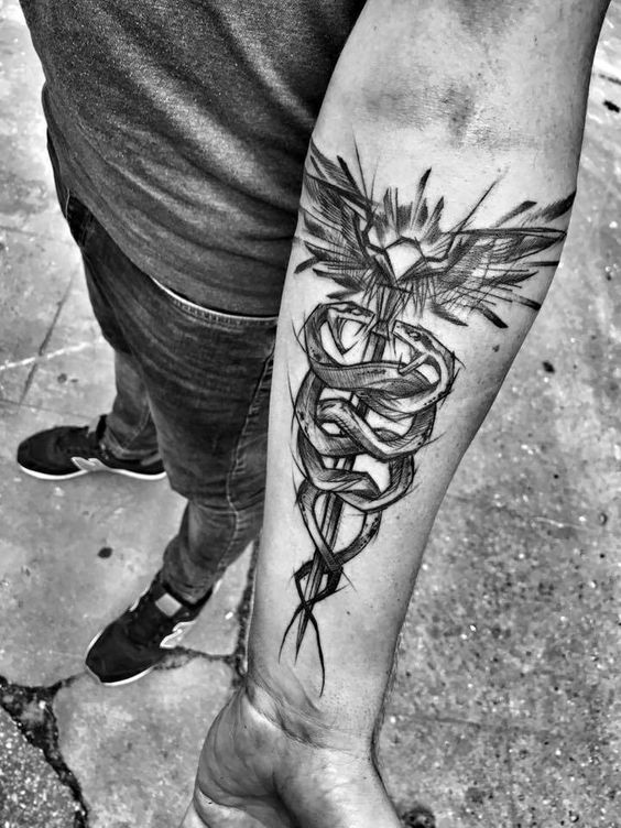 Caduceus is symbol from Greek mythology and often used for tattoos