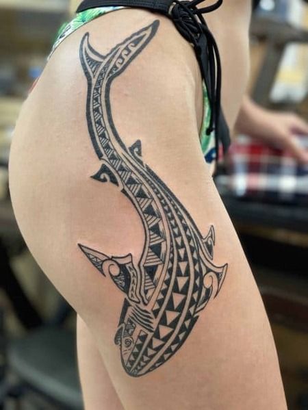 An intricate tribal shark tattoo with fine details is a true masterpiece. It requires a skilled artist to capture the complexity of the design. It’s perfect for those who admire meticulous craftsmanship and deep symbolism.