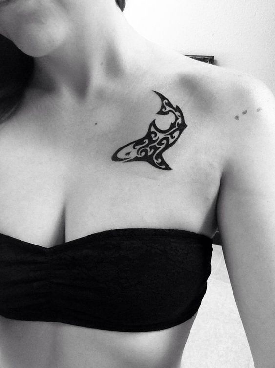 The shoulder-blade tribal shark tattoo makes a bold statement. Its placement allows for a larger design, showcasing the beauty of tribal art. This tattoo is ideal for those who want to make their mark with something truly eye-catching.
