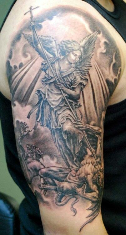 Discover the captivating world of half sleeve St. Michael tattoos, where art and faith merge. These tattoos, covering half of the arm, showcase intricate designs of the archangel. St. Michael, known as the defender against darkness, is a powerful symbol in these tattoos. His depiction often includes vibrant colors and detailed imagery, making each tattoo a work of art.