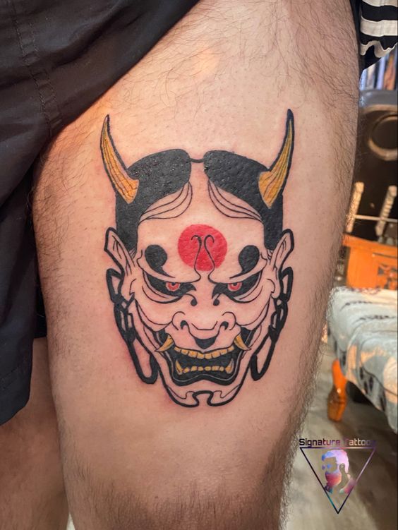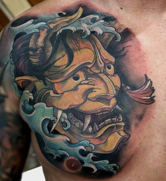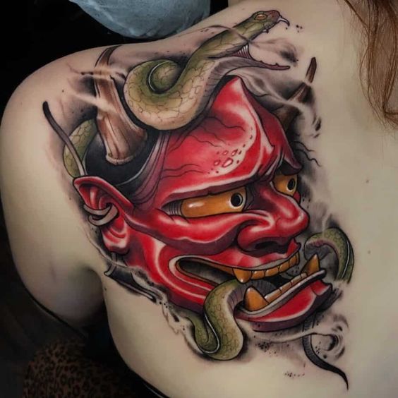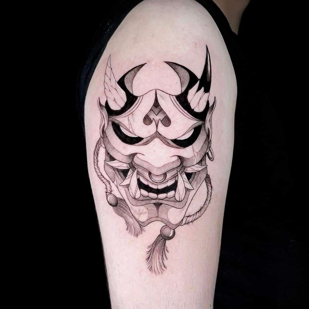 Consider these 15 mind blowing and scary Oni mask tattoos