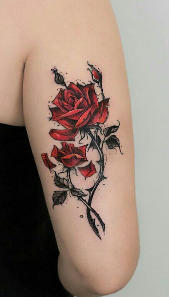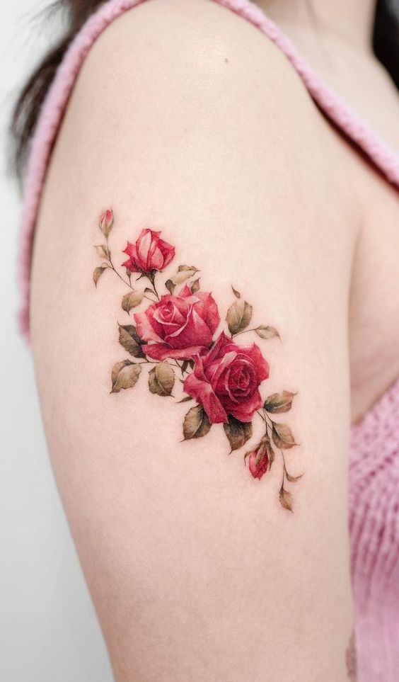 Consider a single, large rose, extending from shoulder to elbow. Here, the rose stands out boldly and beautifully. Particularly, this design suits those who prefer statement pieces, commanding attention and admiration.