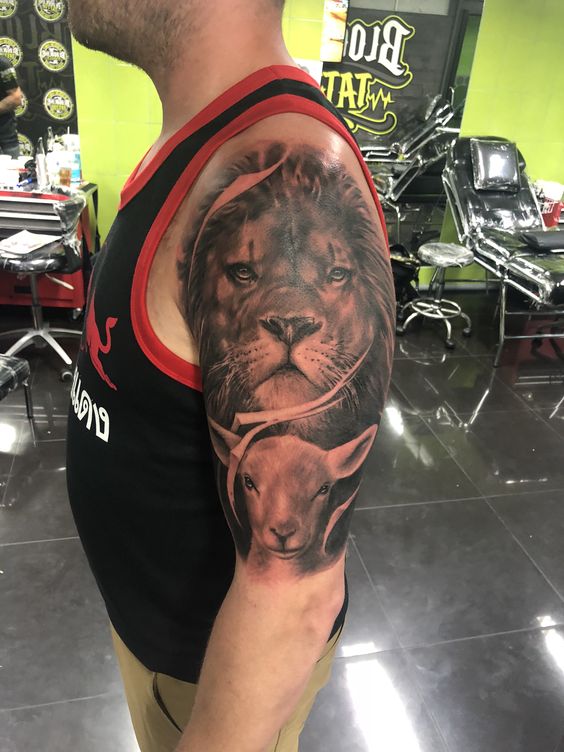 In search of daily inspiration? A lion and lamb tattoo might just fuel your creative spirit. Tattoos are powerful mediums for self-expression. Likewise, the lion and lamb combo is no exception. Intricately designed, these tattoos offer a rich tapestry of symbolism. A lion signifies strength, power, and courage. Conversely, a lamb represents peace, innocence, and purity.