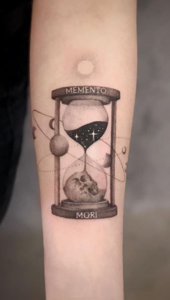 In conclusion, these tattoos are a bold choice, offering both aesthetic appeal and deep meaning. They serve as a conversation starter and a personal reminder of life’s fleeting nature. If you’re looking for a tattoo that combines beauty with philosophy, this is it. Choosing a memento mori tattoo with an hourglass is a profound commitment to embracing life’s transient yet beautiful nature.
