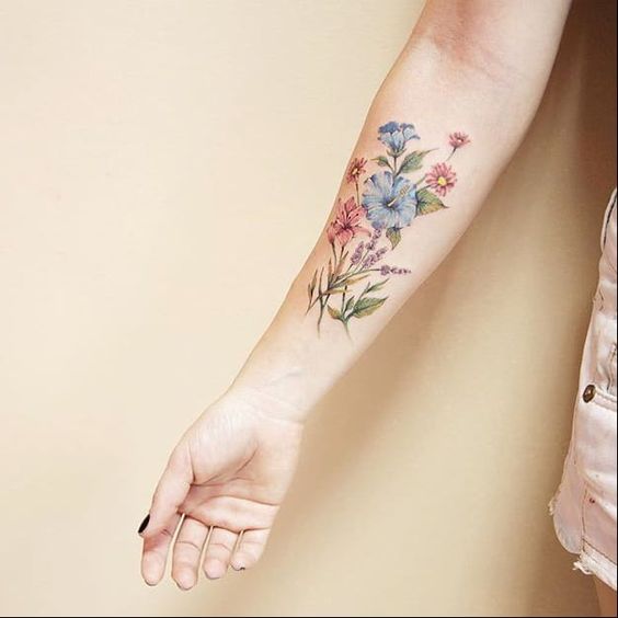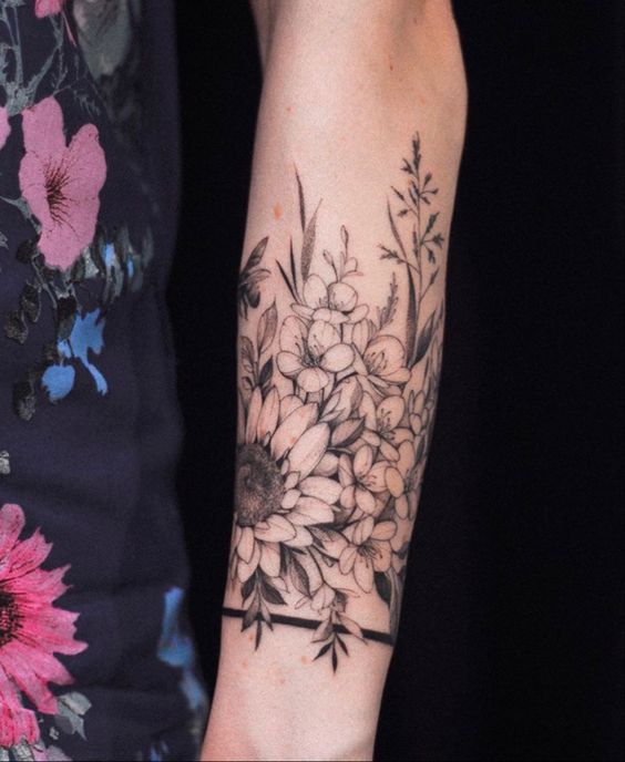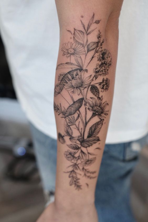 Wildflower forearm tattoos are versatile in style and size. Some prefer a single, small bloom, while others go for a full forearm design. The forearm is an ideal canvas for these tattoos, offering visibility and space. It’s a place where the tattoo can be easily seen and appreciated.