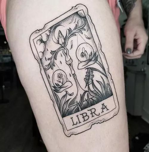 Libra is an air sign, symbolized by the Scales of Justice. These tattoos can be intricate or minimalistic, yet always balanced and harmonious. People often get them to emphasize their pursuit of fairness and equilibrium in life. Indeed, the symbolic scales capture the essence of a balanced existence.