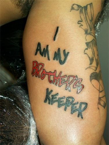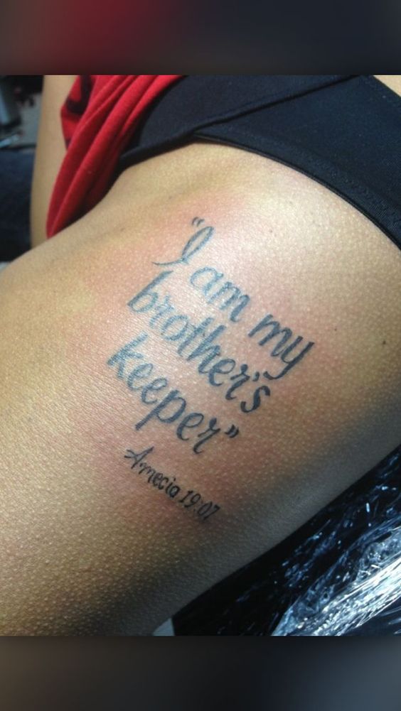 Even in minimalism, these tattoos astonish. A simple, yet elegant, “My Brother’s Keeper” in fine script can curve gracefully along an inner arm. Its understated beauty lies in its simplicity and the quiet strength it represents.