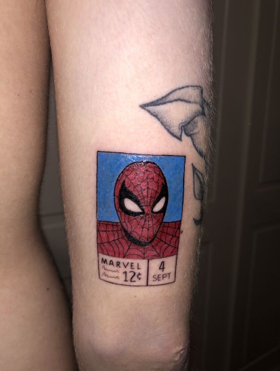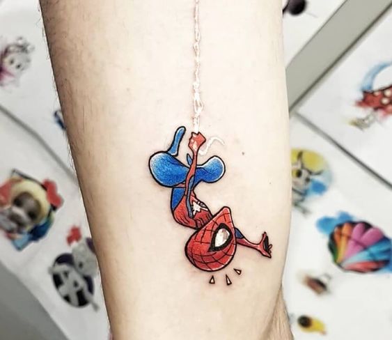 Furthermore, the integration of a Spiderman quote in the tattoo is impactful. It can be a source of inspiration and a personal motto. Equally compelling is the use of color splashes. It adds vibrancy to the small tattoo, bringing Spiderman’s costume to life.