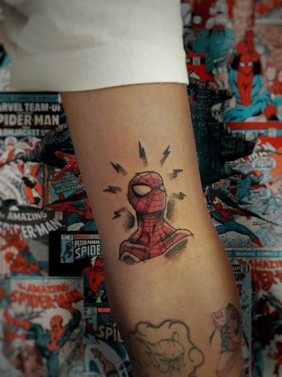 One memorable design is the minimalist Spiderman mask. It’s subtle yet instantly recognizable, embodying the hero’s spirit. Another option is Spiderman’s iconic web in a small, intricate pattern. It symbolizes the web-slinger’s unique powers and agility. Also, a small spider emblem tattoo is a sleek choice. It represents Spiderman’s alter ego and resilience.