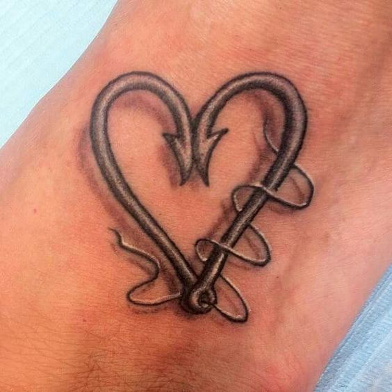 Fifthly, let’s consider the placement. Popular spots for Fish Hook Heart Tattoos include the wrist, ankle, and behind the ear. You have the freedom to choose a location that resonates with you, whether you want it hidden or displayed prominently.
