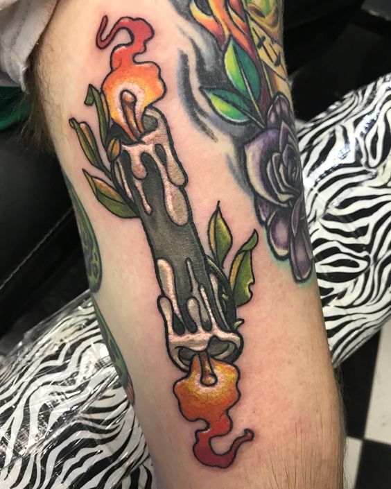 Some designs incorporate flowers, blending the beauty of life with the temporality of a flame. These tattoos emphasize the transient nature of existence. Others show a candle with falling wax, depicting time’s passage and life’s fragility.