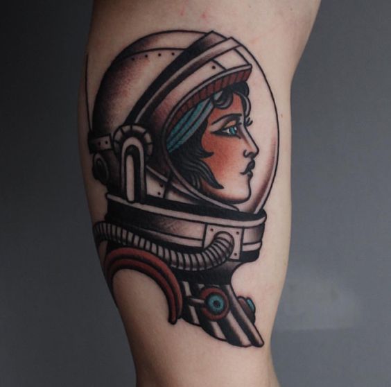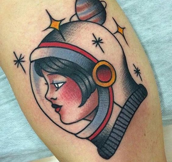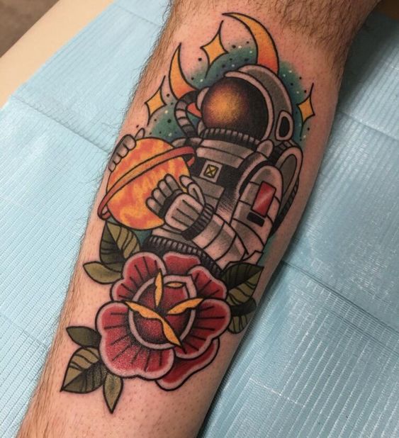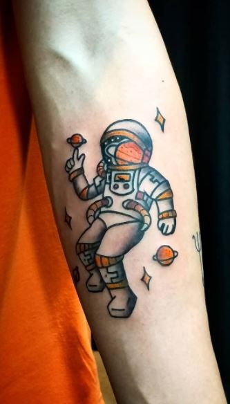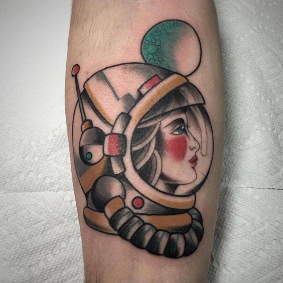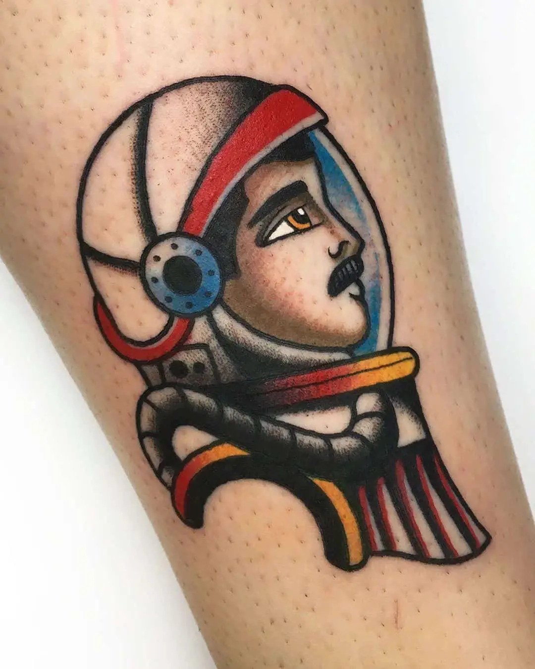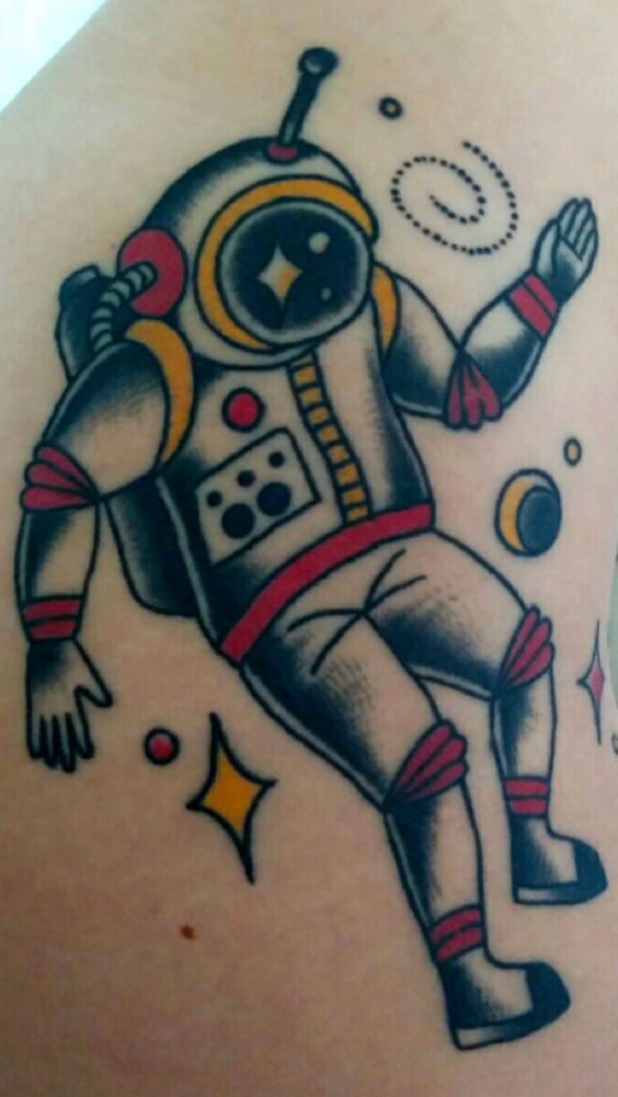 These astronaut traditional tattoos are not just decorative. They represent a passion for the unknown, a thirst for exploration, and the courage to carry the universe within us.
