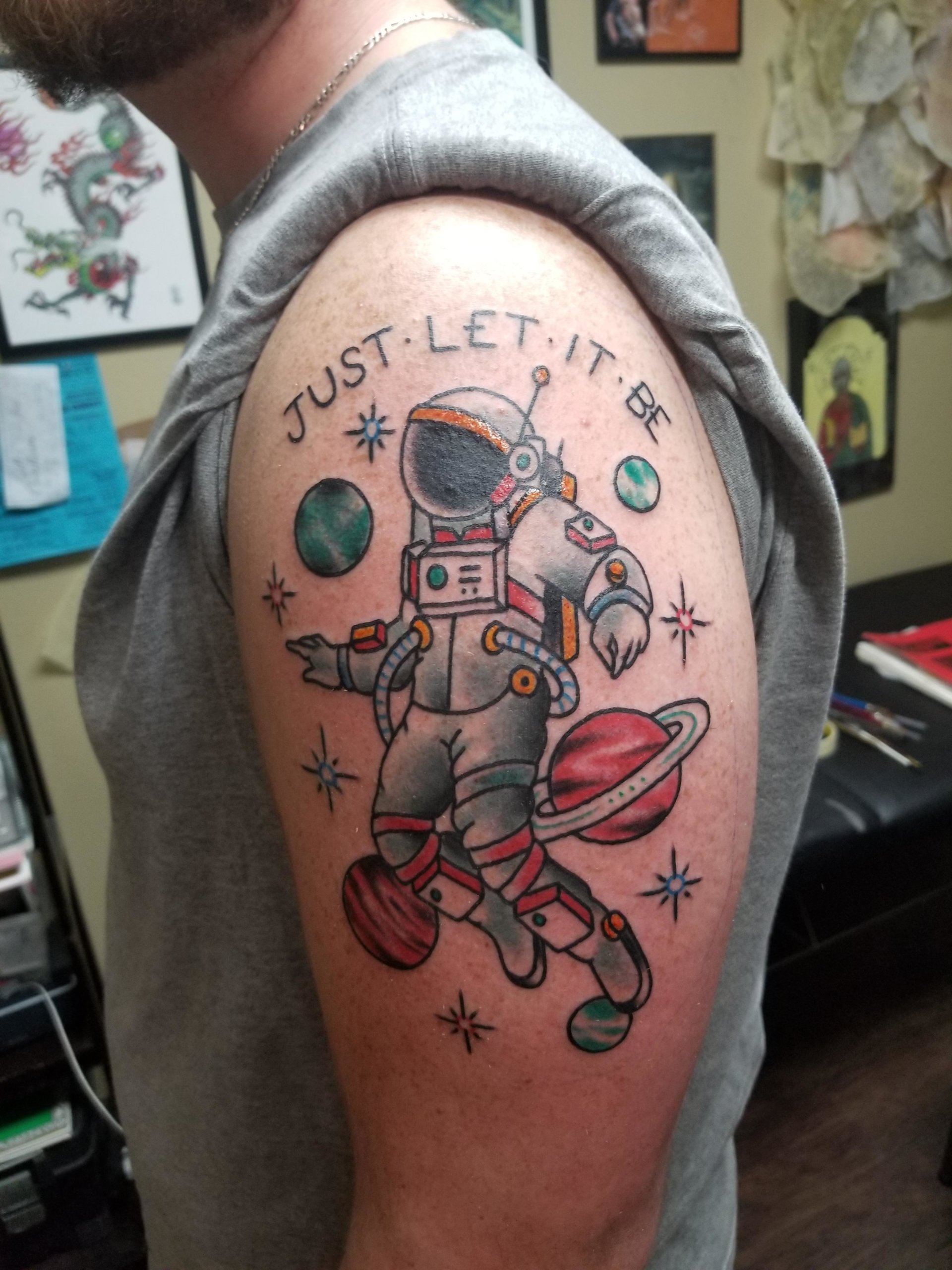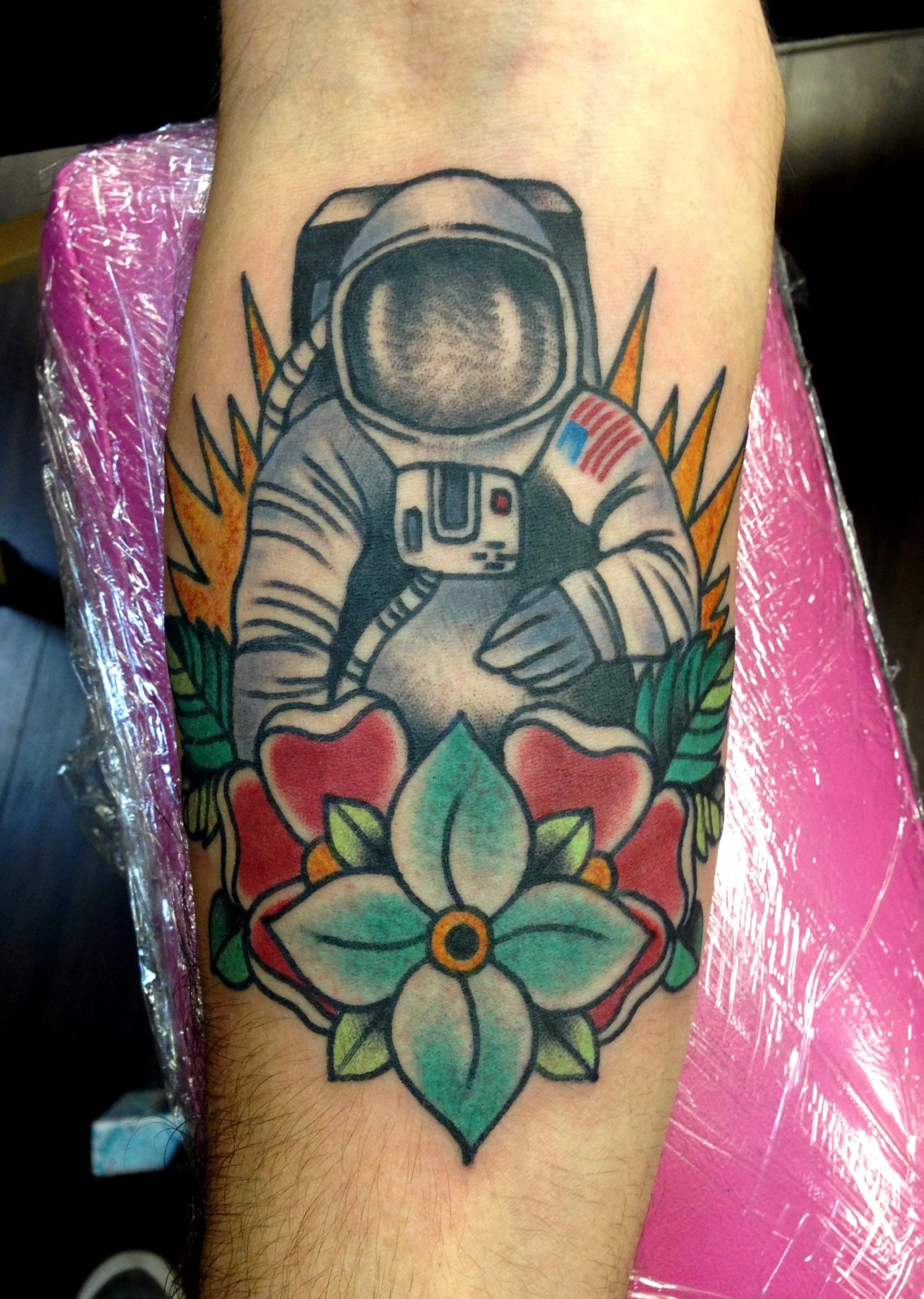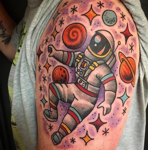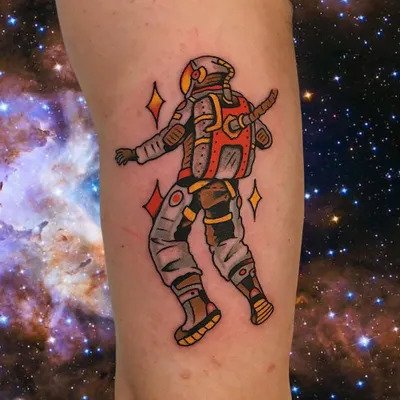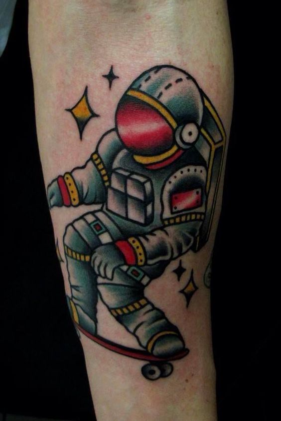 These astronaut traditional tattoos are not just decorative. They represent a passion for the unknown, a thirst for exploration, and the courage to carry the universe within us.
