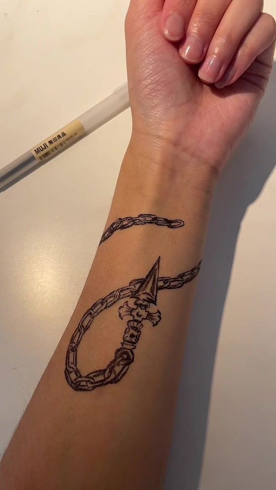 Fifthly, consider the placement. The forearm is an ideal canvas for this design. It’s large enough for a detailed chain but also easy to conceal if needed. Consequently, you get a tattoo that’s both eye-catching and practical.