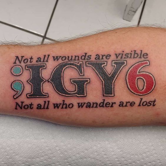 Now, let’s delve into design options. The IGY6 tattoo can range from simple to elaborate. It can feature just the text or include additional elements. For instance, some people add a semicolon, symbolizing mental health awareness. Alternatively, others incorporate colors like teal or black to signify PTSD or loss. In short, the design possibilities are endless.