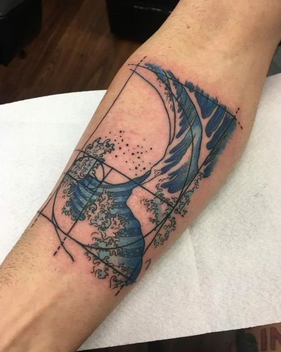 Geometric shapes bring a sense of order and precision to the fluidity of waves. This contrast mirrors life’s balance between chaos and order. Such tattoos often feature crisp lines intersecting with gentle curves. Thus, they capture the essence of nature’s unpredictability within a structured framework.