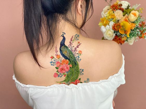 Many designs integrate other elements, like flowers or mandalas. This combination enhances the tattoo’s aesthetic and symbolic depth. It’s a creative way to personalize your peacock tattoo, making it truly one-of-a-kind.