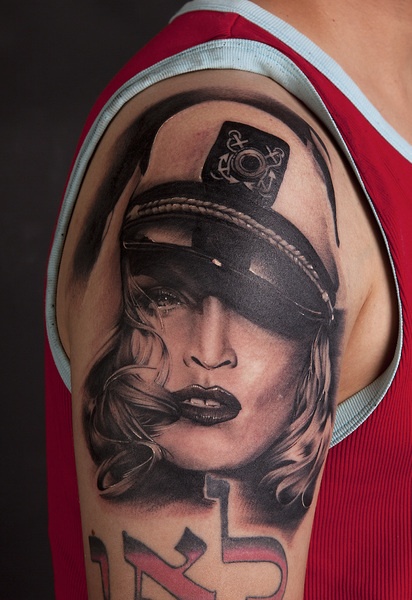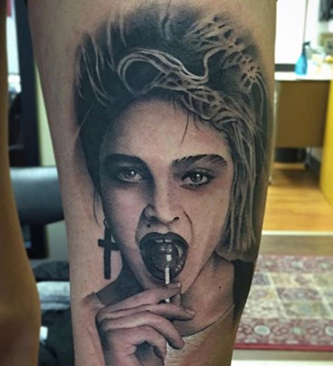 Finally, consider the color scheme. Black and white tattoos have a classic appeal. Yet, adding a touch of color could make your Madonna tribute pop.