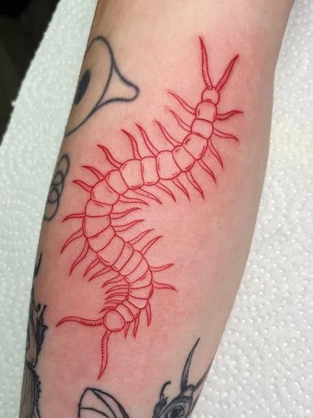 A simple centipede tattoo can be impressively captivating and symbolic. Centipedes, with their many legs and segmented bodies, symbolize flexibility and adaptability. They are perfect for those seeking a design that reflects resilience and the ability to navigate life’s challenges. A centipede tattoo is not just a piece of art; it’s a statement of strength.