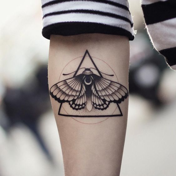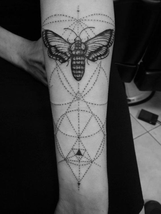 Furthermore, a geometric moth with interlocking polygons can illustrate life’s complexity. Therefore, it serves as a reminder of the interconnectedness of all things. Also, by employing symmetry, the tattoo can bring a sense of balance and harmony to the wearer.