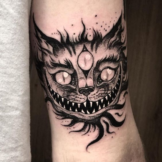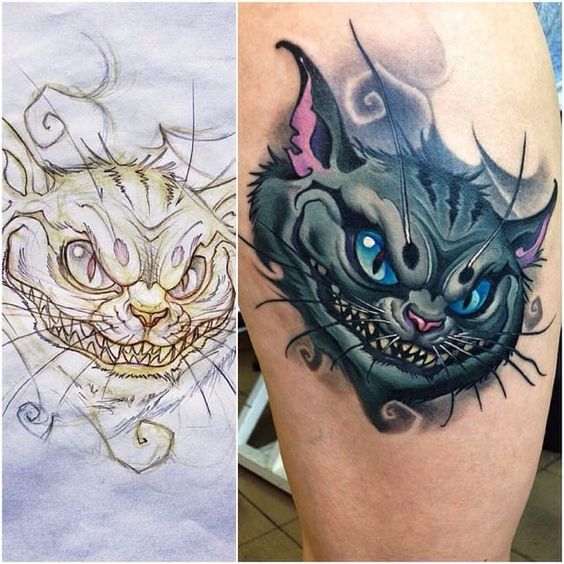 The artists use bold contrasts to bring the Cheshire Cat to life. Shadows and light play across the designs, making each tattoo pulse with energy. The cat’s iconic grin is a recurring element, sometimes only visible in the dark ink. This element captures the essence of the character, mysterious and ever-changing. The tattoos are not just skin deep; they are windows into the souls of those who wear them.