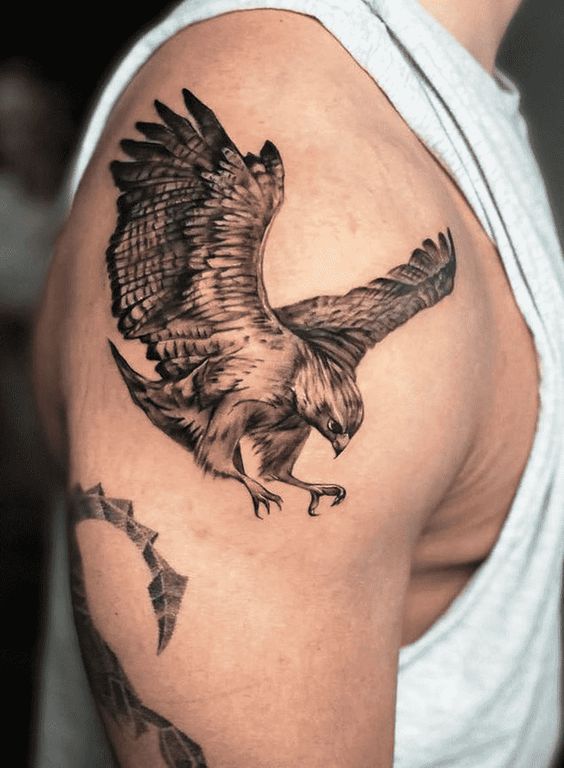In conclusion, a Hawk Shoulder Tattoo is not just a piece of art; it’s a statement. It speaks of your strength, focus, and freedom. It’s a constant reminder of your inner power and your connection with the natural world. So, if you’re looking to make a bold statement with your next tattoo, consider the Hawk Shoulder Tattoo. It’s a design that combines beauty, symbolism, and personal meaning in one stunning package.