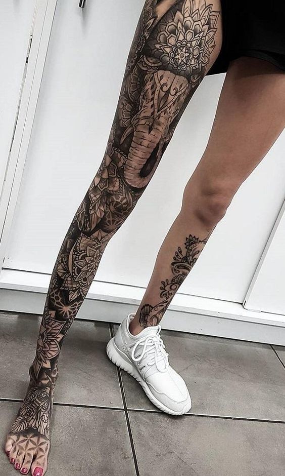 Mandalas are ancient symbols rooted in spirituality. Translated to a full-leg canvas, they become epic. These tattoos usually feature intricate patterns and deep meanings. As a result, they connect the physical with the spiritual. Such artwork resonates with a broad audience. So, whether you’re a tattoo aficionado or a first-timer, there’s allure here for you.