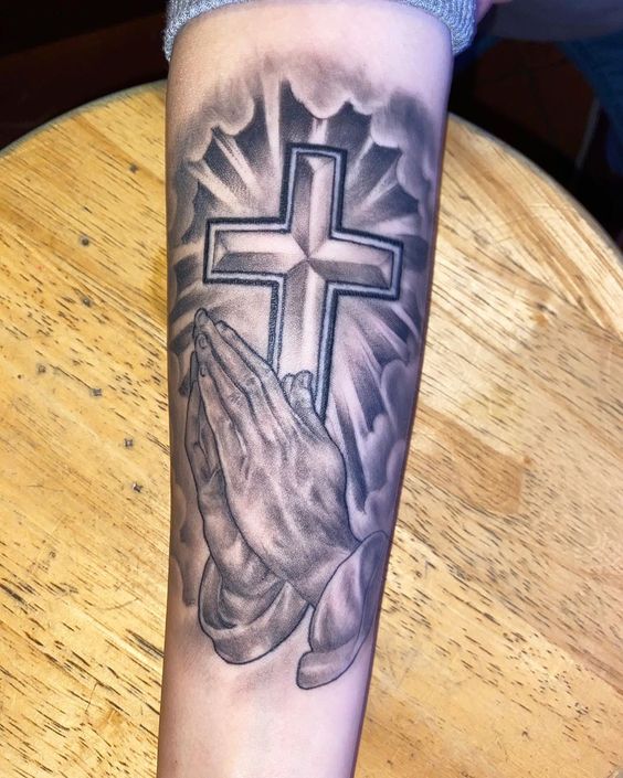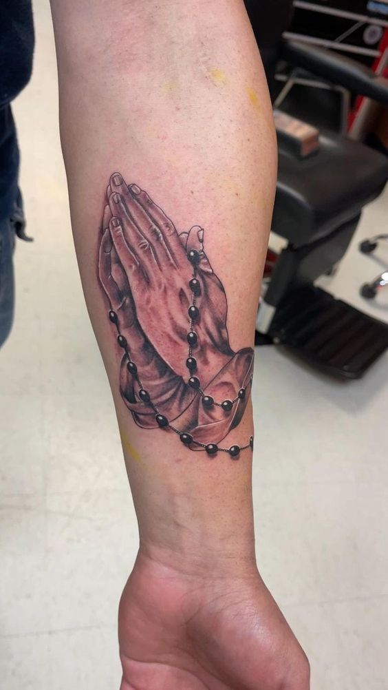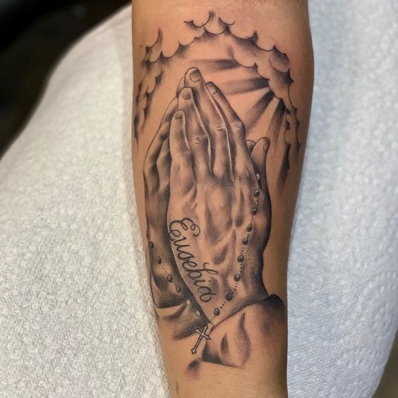 These tattoos can range from simple to intricate. Every line, every shade tells a unique tale. They can be small and discreet or large, covering the entire forearm. The detail in these tattoos draws immediate attention. They show the hands in prayer, sometimes with rosaries or crosses added for deeper meaning.