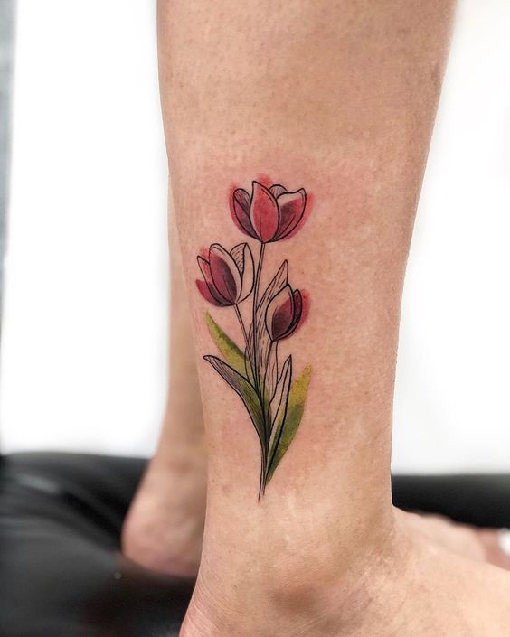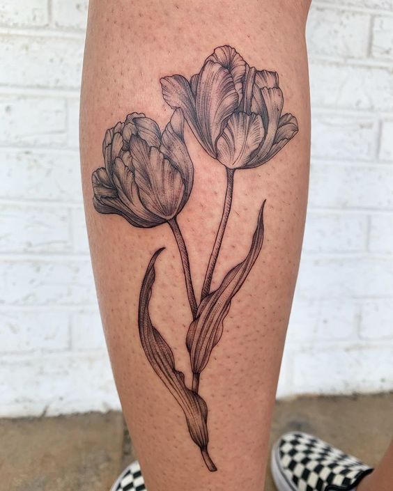 These tattoos suit diverse styles, from minimalist to intricate. A single tulip tattoo symbolizes simplicity, while clusters illustrate abundance. Some designs merge tulips with other elements, like butterflies, symbolizing transformation. Tulip tattoos often adorn visible areas, showcasing their beauty.
