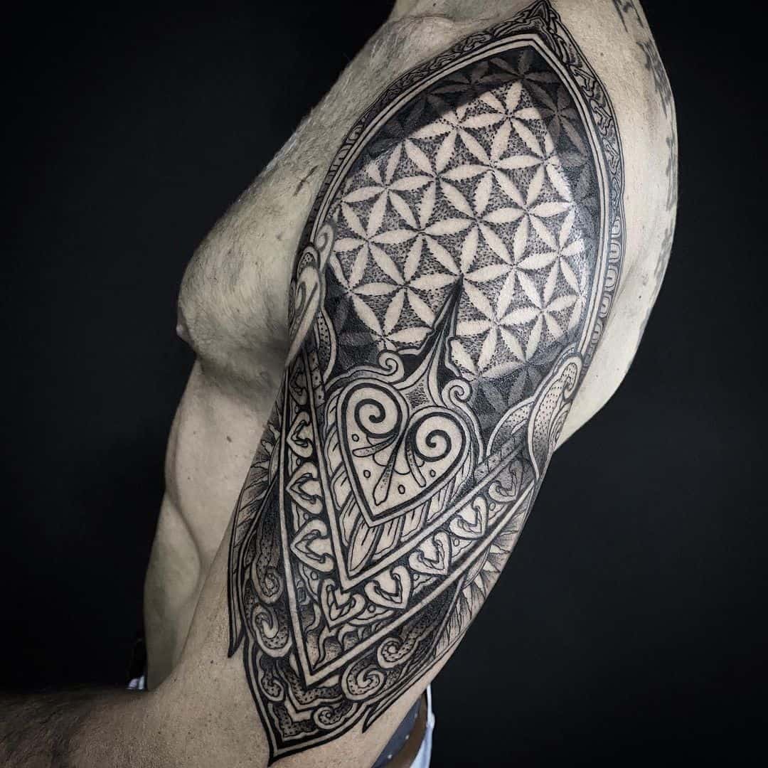 Welcome to the mesmerizing world of Mandala tattoos for men and women. These designs captivate not just by their visual appeal but also by their deep symbolism. Often, they represent concepts like the universe, balance, and unity. Intrigued yet? Well, you should be. Offering a rich tapestry of design possibilities, Mandala tattoos are a versatile choice. For men, they symbolize strength, focus, and depth. These tattoos can be bold, featuring dark ink or complex geometric patterns.
