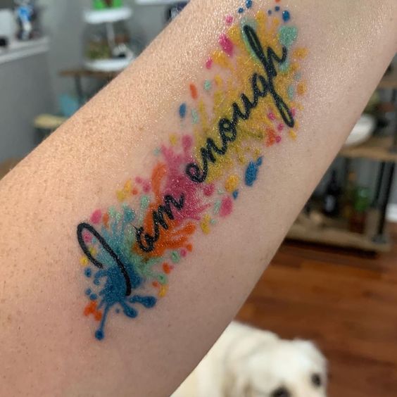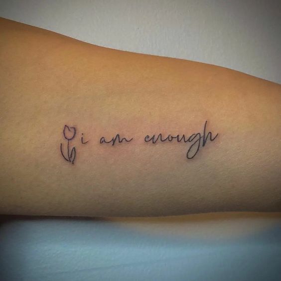 The “I am enough” tattoo is a beautiful expression of self-love and acceptance. It’s a reminder that you are worthy of love and respect just as you are. The tattoo can serve as a daily affirmation to oneself, promoting self-confidence and empowerment.