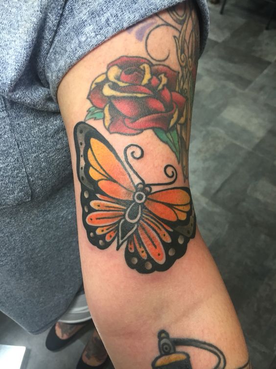 The Monarch Butterfly Traditional Tattoo is versatile in terms of placement. Popular spots include the forearm, back, and even the calf. Moreover, the size can be adjusted to fit different areas. Additionally, the design can be a standalone piece or part of a larger tattoo collection.