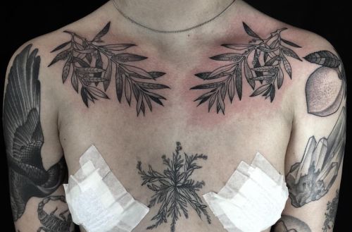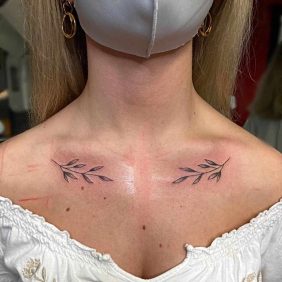 Deciding on a spot for your tattoo? Olive branch collarbone tattoo offer a perfect solution. These tattoos sit gracefully, emphasizing the delicate curve of the collarbone. Moreover, they add an air of sophistication to your appearance. Olive branches symbolize peace and perseverance, and their placement matters. On the collarbone, they lie close to the heart, enhancing their significance.