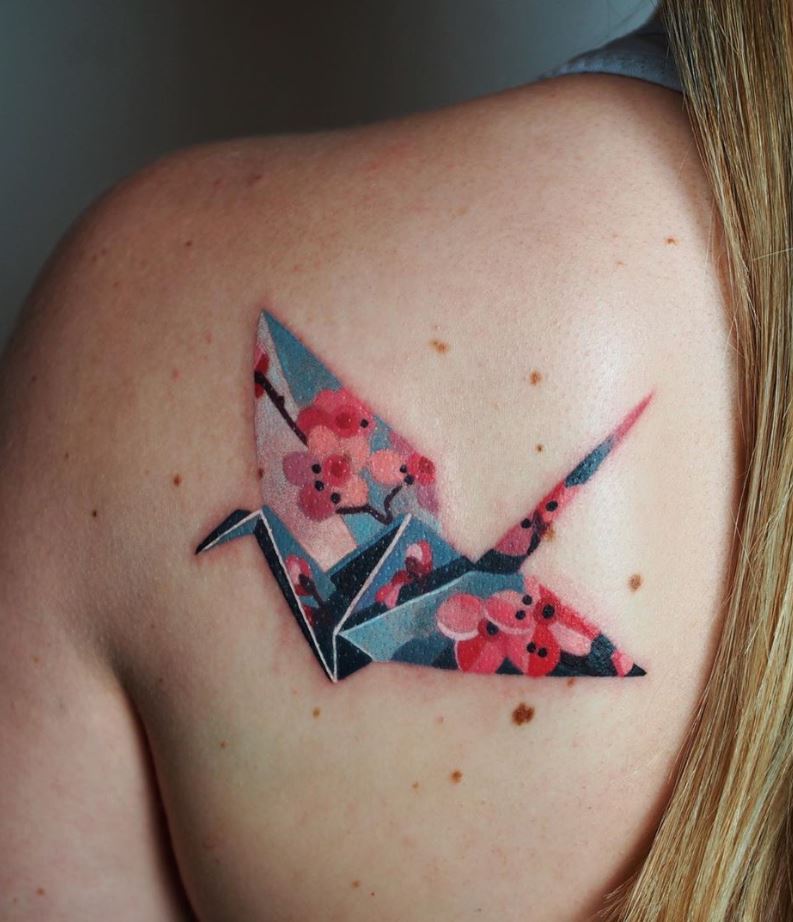 Moreover, the origami crane tattoo is more than just ink on skin. It’s a personal statement, a piece of art that speaks silently yet powerfully. For many, it represents a journey through tough times. Conversely, for others, it’s a celebration of life’s delicate balance. Indeed, the origami crane is versatile, fitting into any style, from minimalist to elaborate.