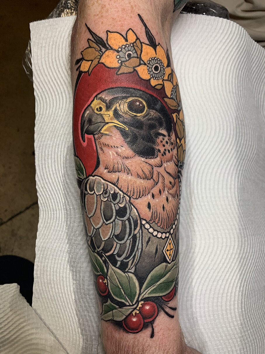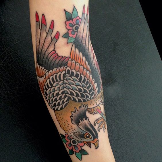 In conclusion, traditional falcon tattoos offer a rich tapestry of symbolism and artistry. From minimalist silhouettes to vibrant, action-filled scenes, these designs capture the essence of the falcon. They symbolize freedom, focus, and personal strength, making them a profound choice for a tattoo.