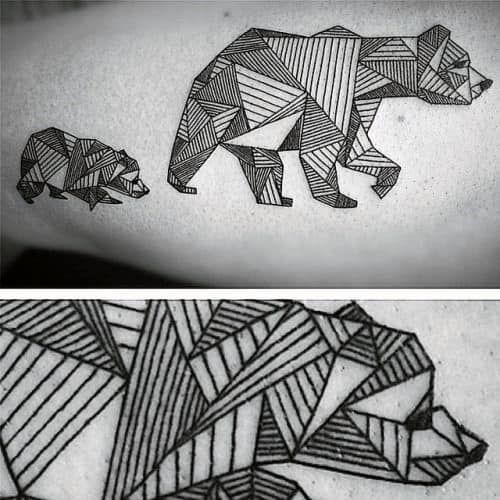Some designs use polygons to form the bear’s shape, creating a 3D effect. Others overlay geometric patterns over a realistic bear image, offering a contrasting texture. These tattoos often use symmetry to enhance the bear’s form. They create a sense of harmony and balance within the design.