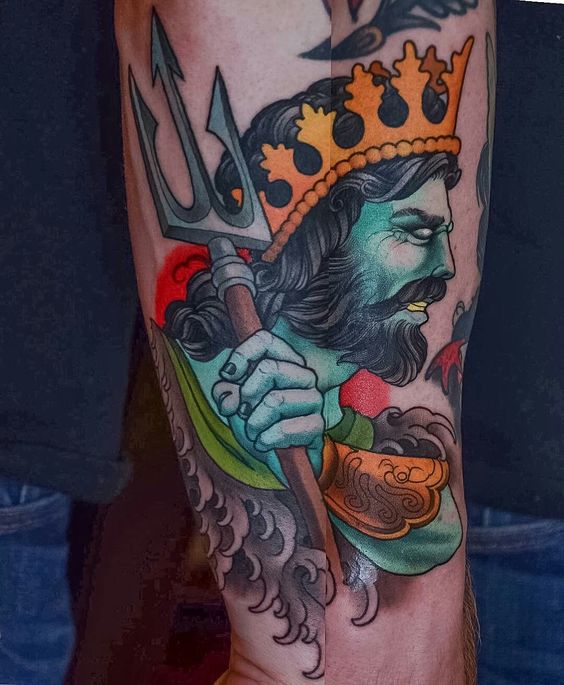 Moreover, the versatility of Poseidon tattoos makes them appealing to a wide audience. They suit various styles, from intricate line work to bold, colorful pieces. Whether you prefer a large, detailed design or a small, subtle symbol, there’s a Poseidon tattoo for everyone. Indeed, these tattoos are as diverse as the ocean itself, offering endless possibilities for personal expression.