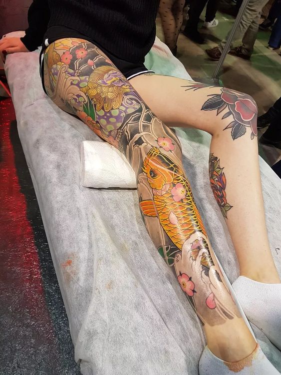 Japanese full leg tattoos offer a rich blend of tradition and modernity. They often feature iconic elements like koi fish, dragons, and cherry blossoms. Moreover, these tattoos can be incredibly detailed, making the leg a perfect canvas. The leg offers ample space, allowing for intricate designs that can be both colorful and meaningful.