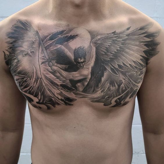 In conclusion, the Saint Michael Chest Tattoo is more than just a piece of body art. It is a guardian’s emblem, symbolizing divine protection, courage, and personal battles. This tattoo resonates with a broad audience, offering a powerful mix of spirituality and artistry.