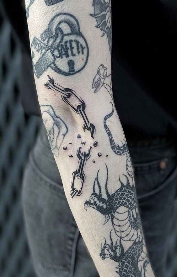 Moreover, arm chain tattoos can be designed in different styles. Some prefer a realistic look, with shadows and highlights for depth. Others opt for a more stylized approach, with abstract or geometric patterns. These choices reflect the wearer’s personality and artistic preference.