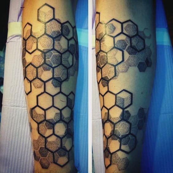 Moreover, geometric honeycomb tattoos resonate with people of all personalities. Whether you’re outgoing or reserved, this design can be tailored to reflect your character. The use of color can also make a significant impact. Opt for vibrant hues to make a bold statement, or stick to monochrome for a more subdued effect. Either way, the result will be eye-catching and meaningful.