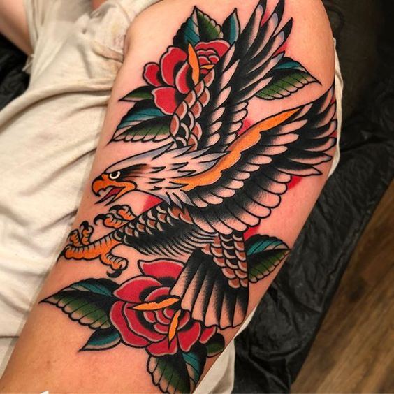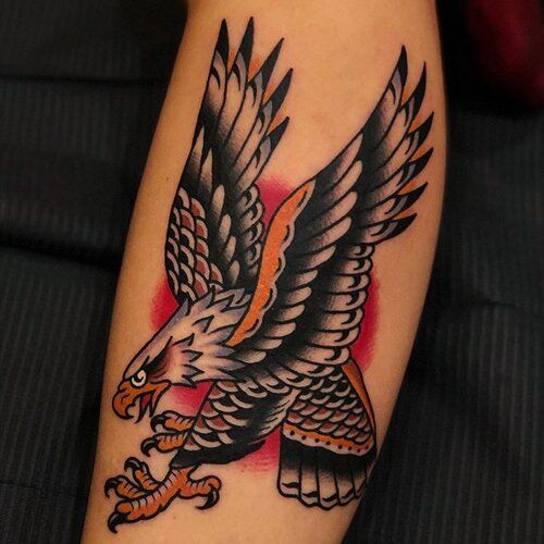 Traditional eagle tattoo combine artistry with powerful symbolism, offering a striking representation of freedom and strength. They’re a celebration of majesty, resilience, and the spirit of independence.