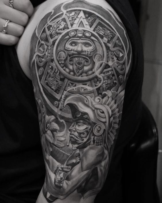 Additionally, their versatility makes them suitable for various placements. Large designs, like the Aztec calendar, work well on the back or chest. Conversely, smaller symbols, like gods or animals, fit perfectly on arms, legs, or shoulders.